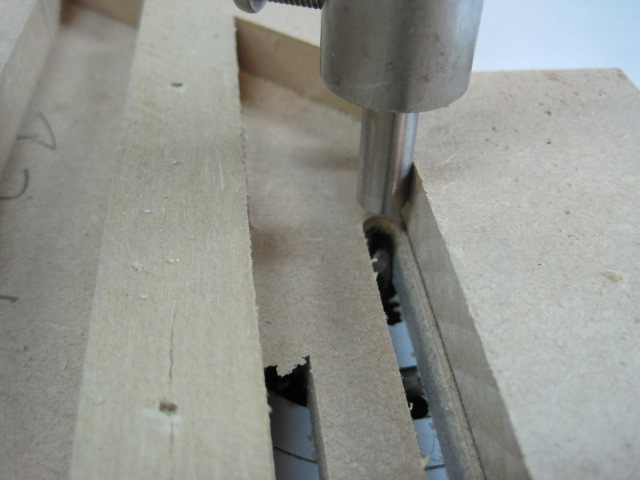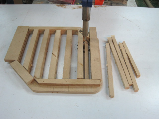 ウーハーBOX保護グリルの製作で、まずは穴を開けたい所にMDFのガイドを止めていきます。